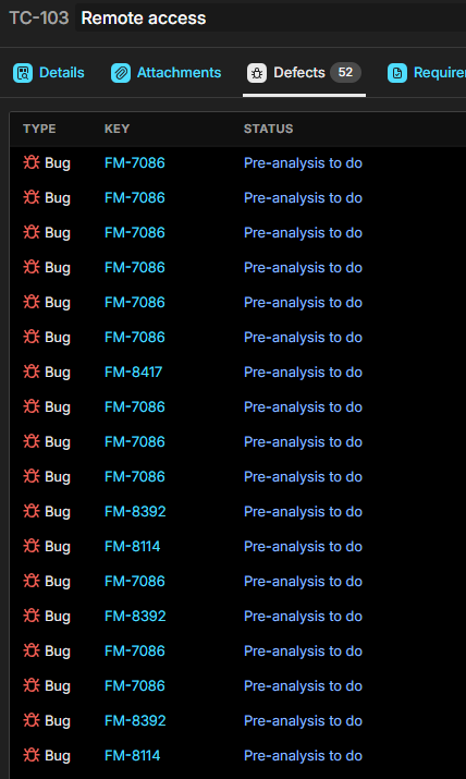 As you can see in the picture below, we have one issue with the same ID linked multiple times in multiple Test Runs and the scope becomes tricky to manage.