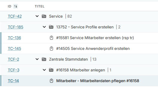 In our case, folders represent processes. Test cases cover different process variants und sub-processes. Test plans are used to string together many sub-processes and process variants. They represent end-to-end processes which jump between different processes and include loops back to “former” processes. As a result, it is necessary to order the test cases regardless of their folder.