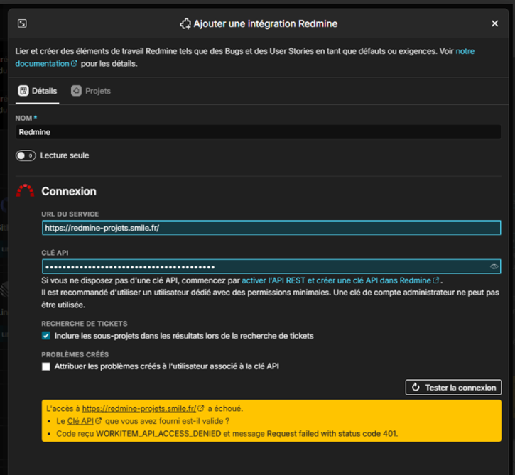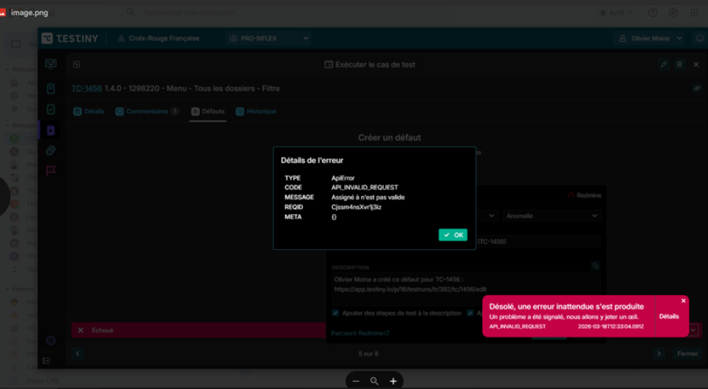 According to our integrator, the blockage may be coming from Testiny, which has to go through an Azure DevOps infrastructure that returns the error “WORKITEM_API_ACCESS_DENIED”.