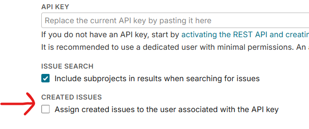 If so, try switching the “Assign created issues to the user associated with the API key” setting in the Testiny Redmine integration on: