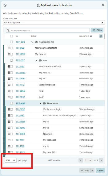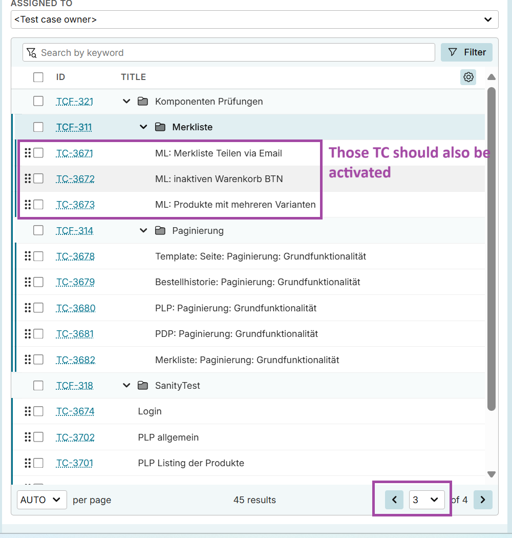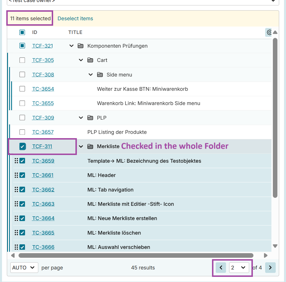 If the amount of Test cases is more than the listed once, then only the Test cases of the first page will be loaded and not all in test cases.